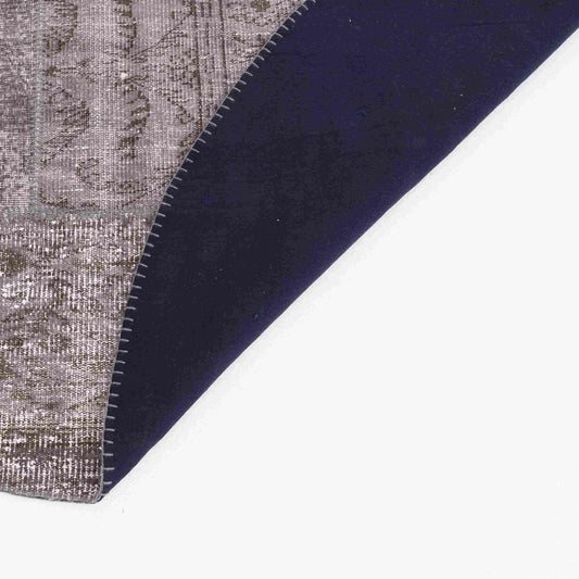 Oriental Round Rug Patchwork Hand Knotted Wool On Wool 250 x 250 Cm - 8' 3'' x 8' 3'' Grey C008 ER23