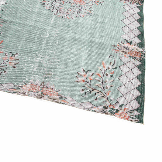 Oriental Rug Vintage Hand Knotted Wool On Cotton 165 x 259 Cm - 5' 5'' x 8' 6'' Turquoise C019 ER12