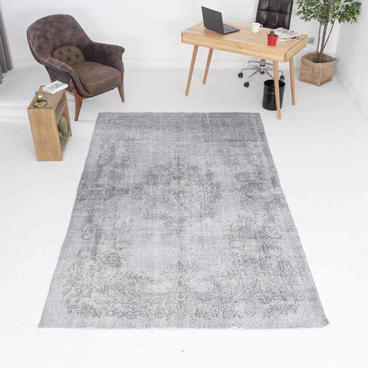 Oriental Rug Vintage Hand Knotted Wool On Cotton 184 x 292 Cm - 6' 1'' x 9' 7'' Grey C008 ER12