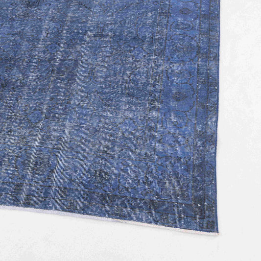 Oriental Rug Vintage Hand Knotted Wool On Cotton 177 x 280 Cm - 5' 10'' x 9' 3'' Navy Blue C012 ER12