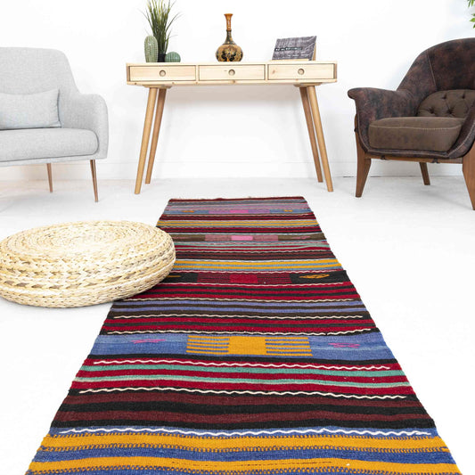 Oriental Kilim Anatolian Handmade Wool On Wool 122 x 315 Cm - 4' 1'' x 10' 5'' Red C014 ER12