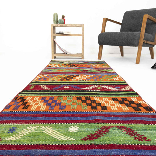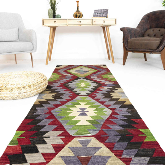 Oriental Kilim Anatolian Handmade Wool On Wool 83 x 295 Cm - 2' 9'' x 9' 9'' Green C001 ER01