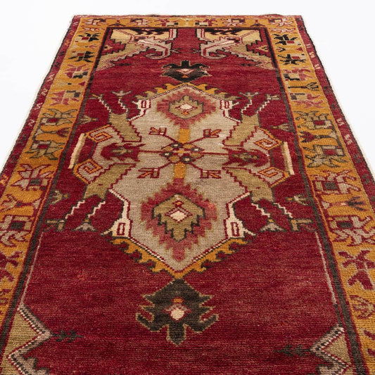 Oriental Rug Anatolian Hand Knotted Wool On Cotton 150 X 380 Cm - 5' X 12' 6'' Red C014 ER12