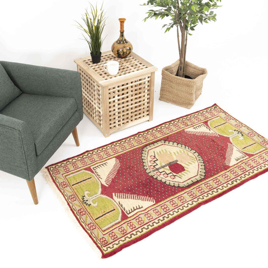 Oriental Rug Anatolian Handmade Wool On Wool 87 X 163 Cm - 2' 11'' X 5' 5'' Red C014 ER01