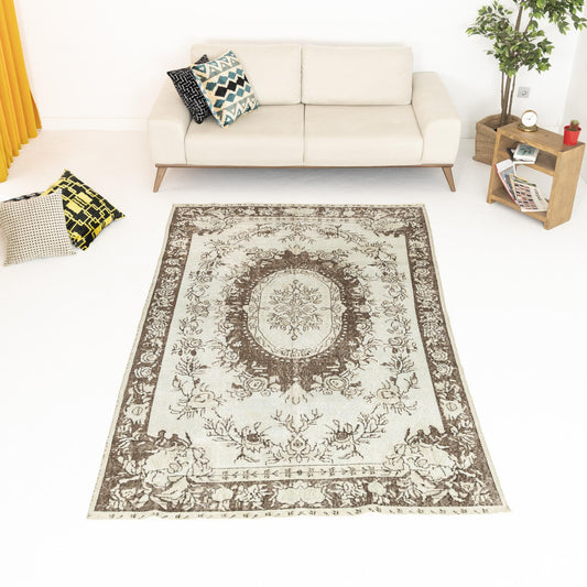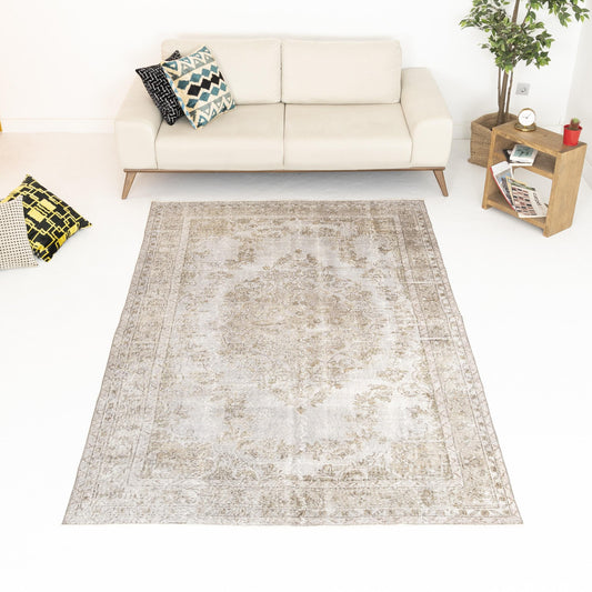Oriental Rug Vintage Hand Knotted Wool On Cotton 173 x 273 Cm - 5' 9'' x 9' Stone C009 ER12