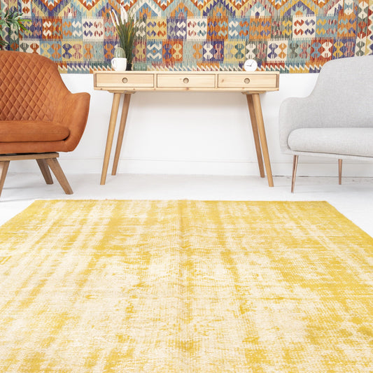 Oriental Rug Vintage Hand Knotted Wool On Cotton 165 x 269 Cm - 5' 5'' x 8' 10'' Yellow C006 ER12