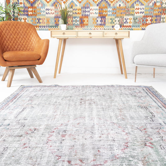 Oriental Rug Vintage Hand Knotted Wool On Cotton 169 x 270 Cm - 5' 7'' x 8' 11'' Grey C008 ER12