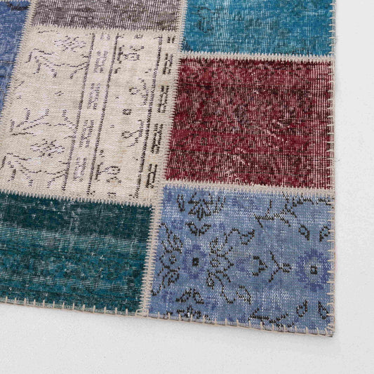 Oriental Rug Patchwork Hand Knotted Wool On Cotton 154 x 237 Cm - 5' 1'' x 7' 10'' Multicolor C016 ER12