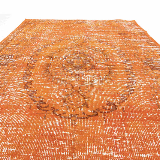 Oriental Rug Vintage Hand Knotted Wool On Cotton 147 x 248 Cm - 4' 10'' x 8' 2'' Orange C011 ER12