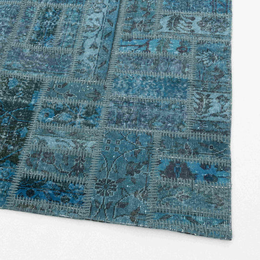 Oriental Rug Patchwork Hand Knotted Wool On Cotton 170 x 240 Cm - 5' 7'' x 7' 11'' Navy Blue C012 ER12