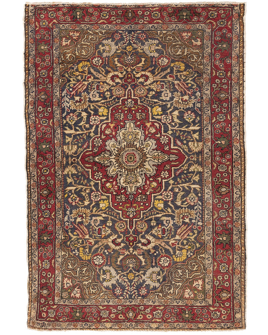 Alfombra oriental de Anatolia hecha a mano de lana sobre lana 110 X 145 cm - 3' 8'' X 4' 10'' Piedra C009 ER01