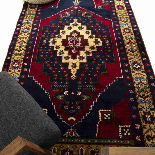 Alfombra oriental de Anatolia hecha a mano de lana sobre lana 125 X 180 cm - 4' 2'' X 5' 11'' Rojo C014 ER01