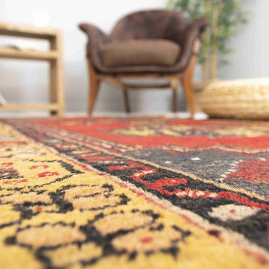 Alfombra oriental de Anatolia anudada a mano de lana sobre lana 121 X 162 cm - 4' X 5' 4'' Amarillo C006 ER01