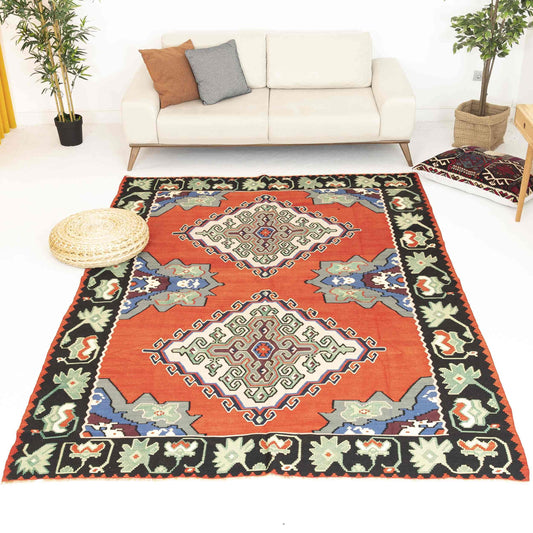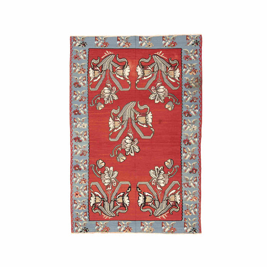 Kilim Gocmen hecho a mano de lana sobre lana 220 X 330 cm - 7' 3'' X 10' 10'' Rojo C014 ER23
