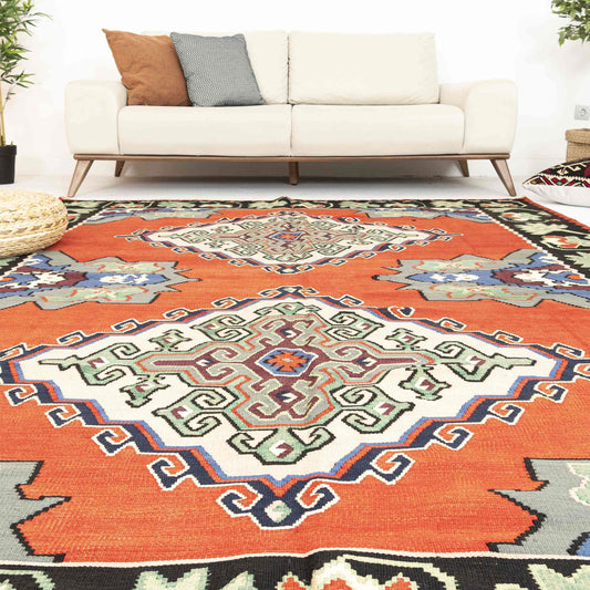 Kilim Gocmen hecho a mano de lana sobre lana 240 X 284 cm - 7' 11'' X 9' 4'' Rojo C014 ER23