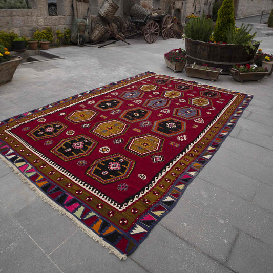 Kilim Sarkshla oriental hecho a mano de lana sobre lana 225 x 346 cm - 7' 5'' x 11' 5'' Rojo C014 ER23