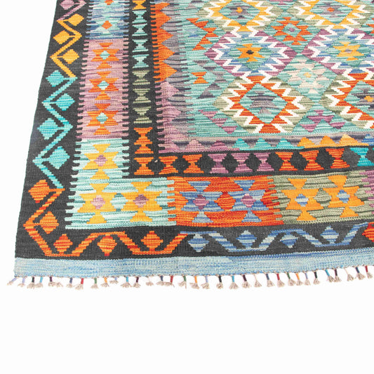 Kilim oriental de Anatolia, hecho a mano, de lana sobre lana, 302 x 392 cm, color aguamarina C003 ER34
