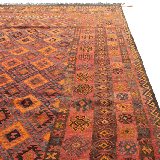 Kilim oriental de Anatolia, hecho a mano, de lana sobre lana, 316 x 385 cm, 10' 4'' x 13' 0'', naranja C011 ER34