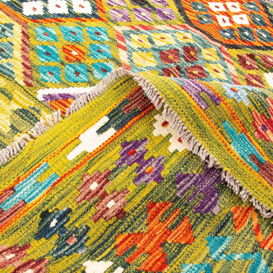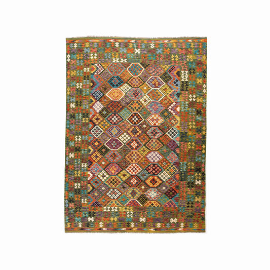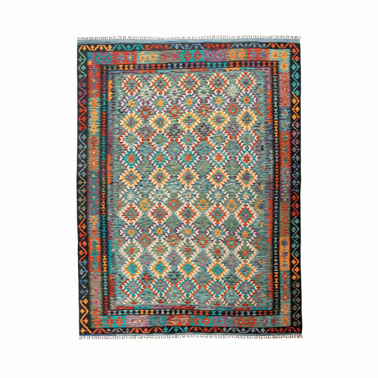 Kilim oriental de Anatolia, hecho a mano, de lana sobre lana, 253 x 349 cm, verde C001 ER34