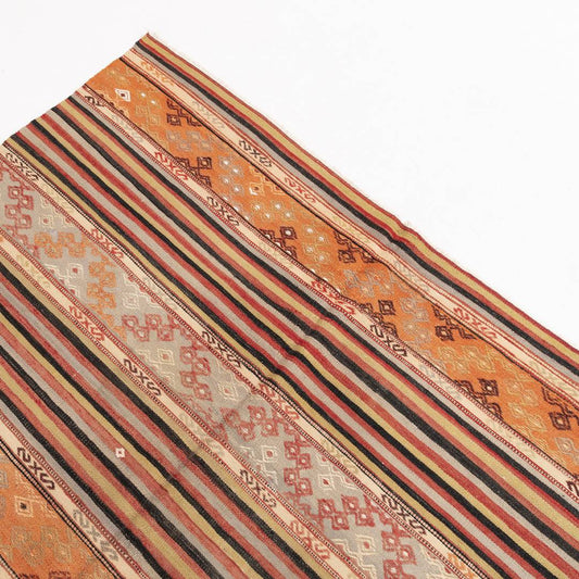Kilim de alfombra turca oriental hecho a mano de lana sobre lana de Anatolia 349 X 103 cm - 11' 6'' X 3' 5'' Arena C007
