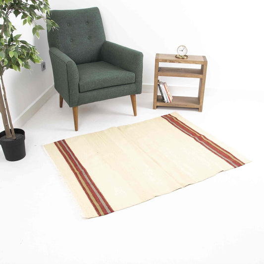 Kilim oriental cicim hecho a mano de lana sobre lana 111 x 138 cm - 3' 8'' x 4' 7'' Arena C007 ER01