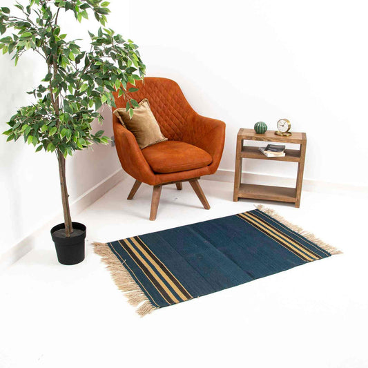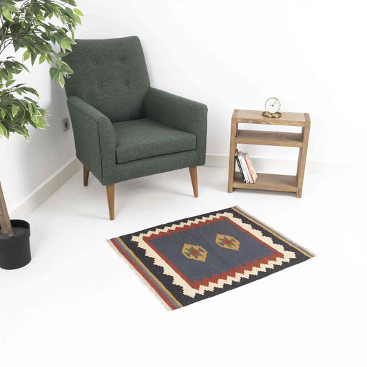 Kilim oriental de Anatolia, hecho a mano, de lana sobre lana, 60 x 80 cm, 2' x 2' 8'', azul marino C012 ER01