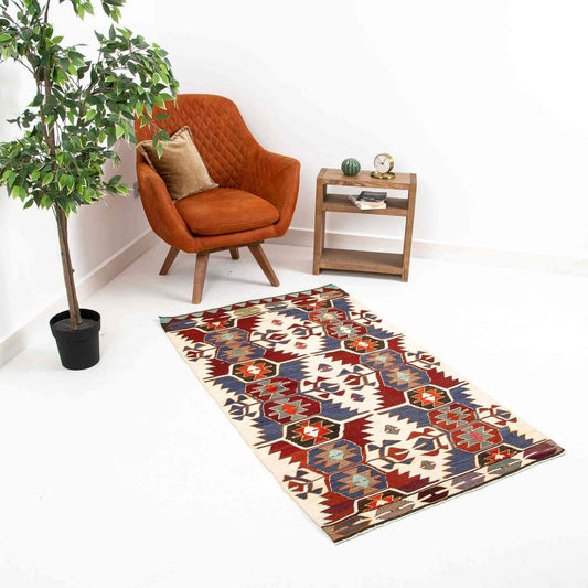 Kilim hecho a mano de lana sobre lana, único, 94 x 123 cm - 3' 2'' X 4' 1'' Arena C007