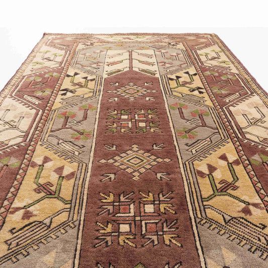 Alfombra oriental de Anatolia hecha a mano de lana sobre lana 122 X 173 cm - 4' 1'' X 5' 9'' Marrón C005 ER01