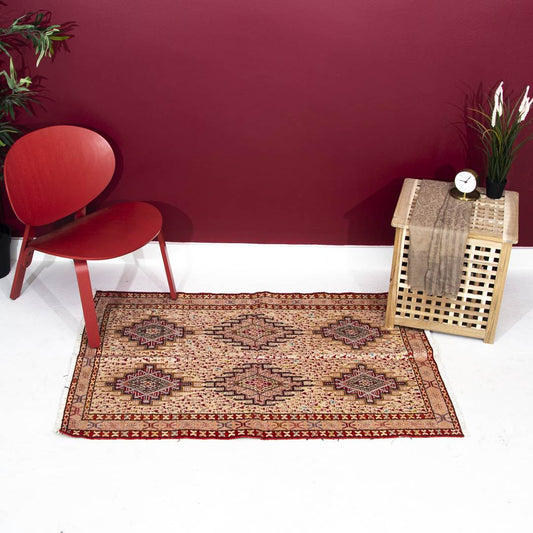 Kilim oriental sahsevan hecho a mano de seda sobre algodón 103 x 144 cm - 3' 5'' X 4' 9'' naranja C011 ER01