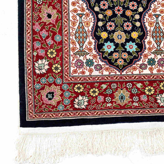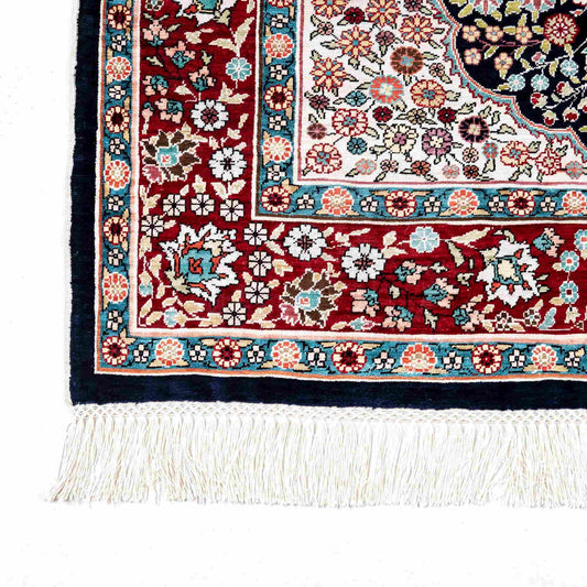 Alfombra oriental Hereke hecha a mano de seda pura - 98 X 149 cm - 3' 3'' X 4' 11'' Azul marino C012 ER01