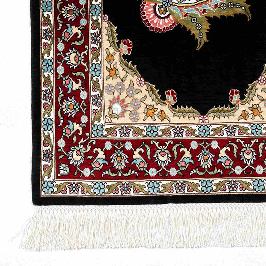Alfombra oriental Hereke hecha a mano de seda pura - 64 X 101 cm - 2' 2'' X 3' 4'' Negro C002 ER01