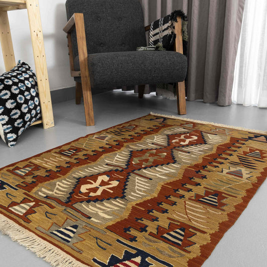 Kilim oriental Denizli hecho a mano de lana sobre lana 95 x 115 cm - 3' 2'' x 3' 10'' Arena C007 ER01