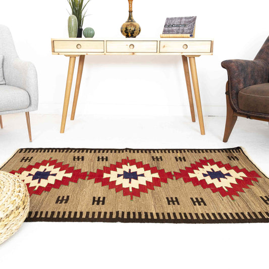 Kilim oriental de Anatolia, hecho a mano, de lana sobre lana, 90 x 125 cm, marrón C005 ER01
