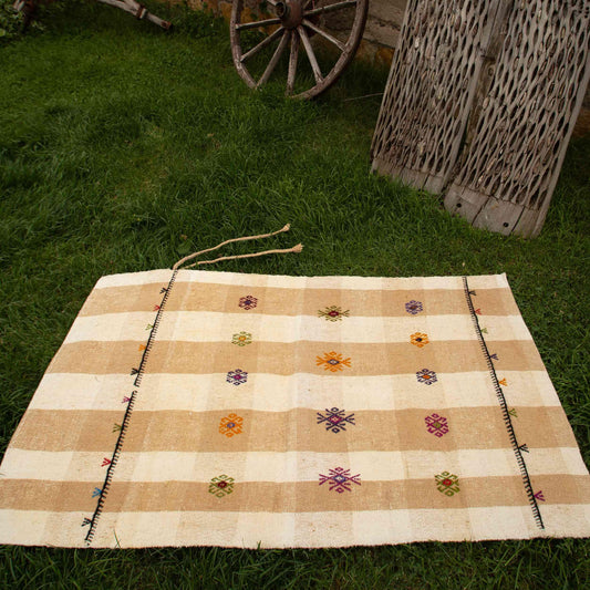 Kilim oriental cuval hecho a mano de lana sobre lana 79 x 140 cm - 2' 8'' x 4' 8'' Arena C007 ER01