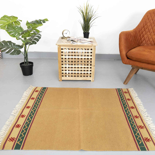 Kilim oriental de Anatolia, hecho a mano, de lana sobre lana, 114 x 130 cm, amarillo C006 ER01