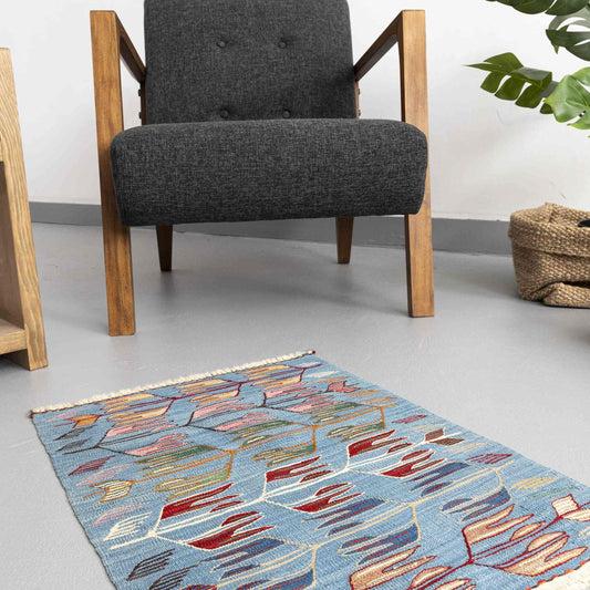 Kilim oriental Konya hecho a mano de lana sobre lana 71 x 93 cm - 2' 4'' x 3' 1'' Azul claro C013ER01