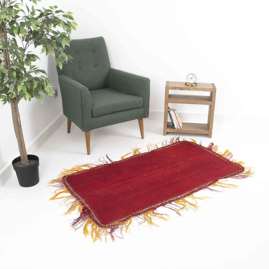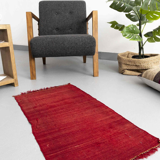Kilim oriental hecho a mano de lana sobre lana 79 x 138 cm - 2' 8'' x 4' 7'' Rojo C014 ER01