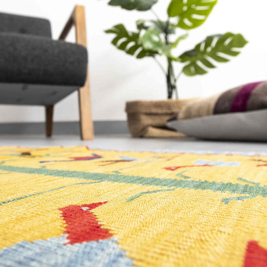 Kilim oriental Konya hecho a mano de lana sobre lana 62 x 97 cm - 2' 1'' x 3' 3'' Amarillo C006 ER01