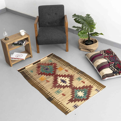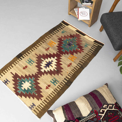 Kilim de Anatolia tejido a mano Lana sobre lana Auténtico Único 90 X 145 Cm - 3' X 4' 10'' m2: 1,305