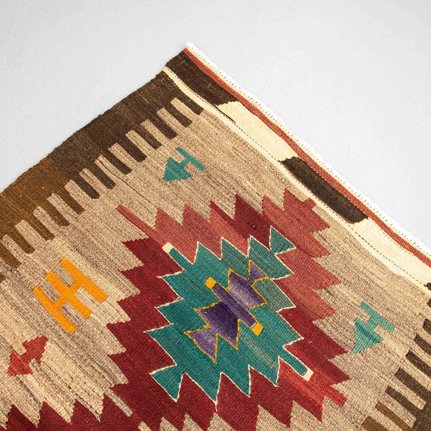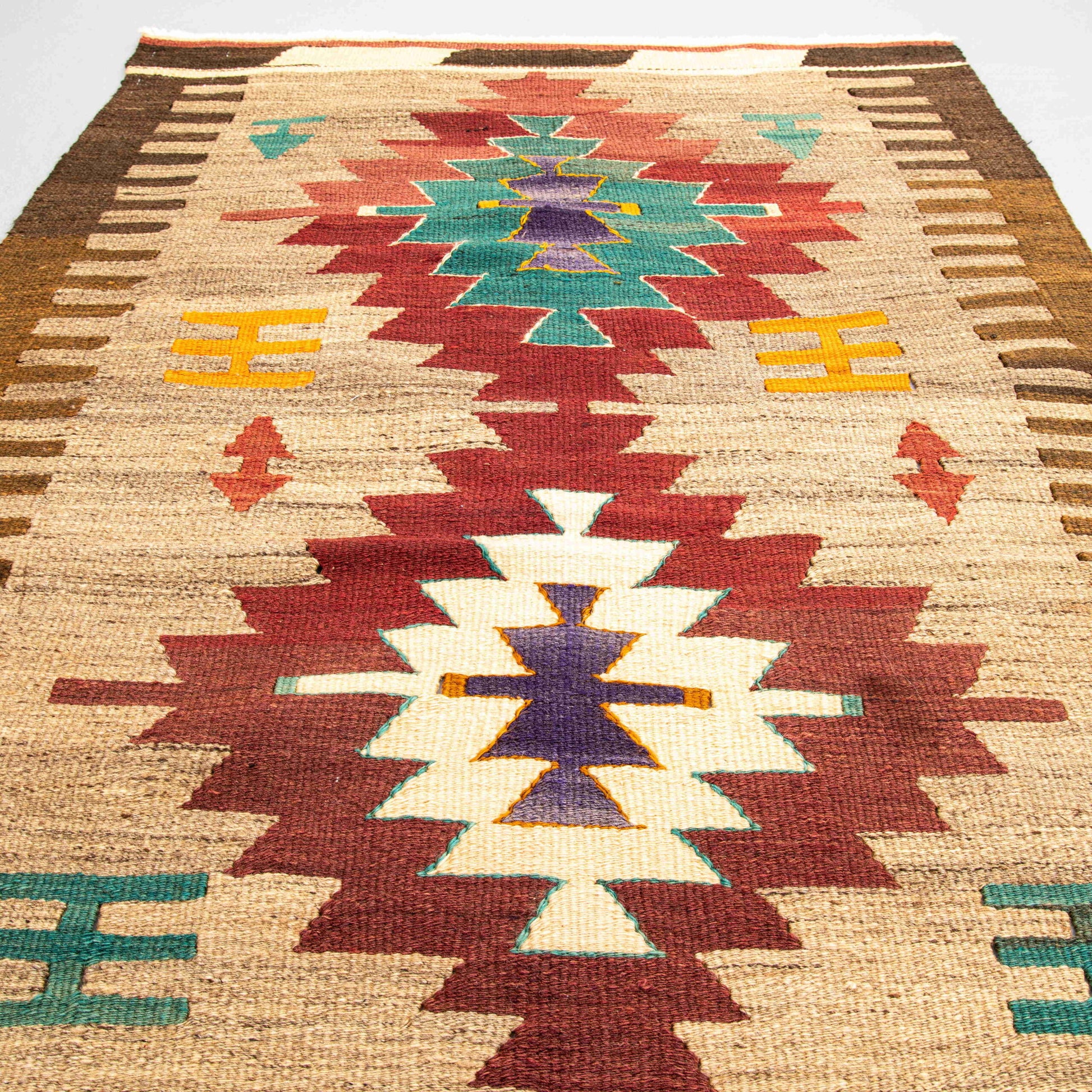 La historia del kilim de Anatolia generalmente se divide en dos partes. La primera categoría son los primeros kilims Yörük decorados con motivos geométricos y representaciones de la naturaleza; La segunda categoría son los kilims otomanos del período clásico decorados con motivos florales y emblemas de medallones".