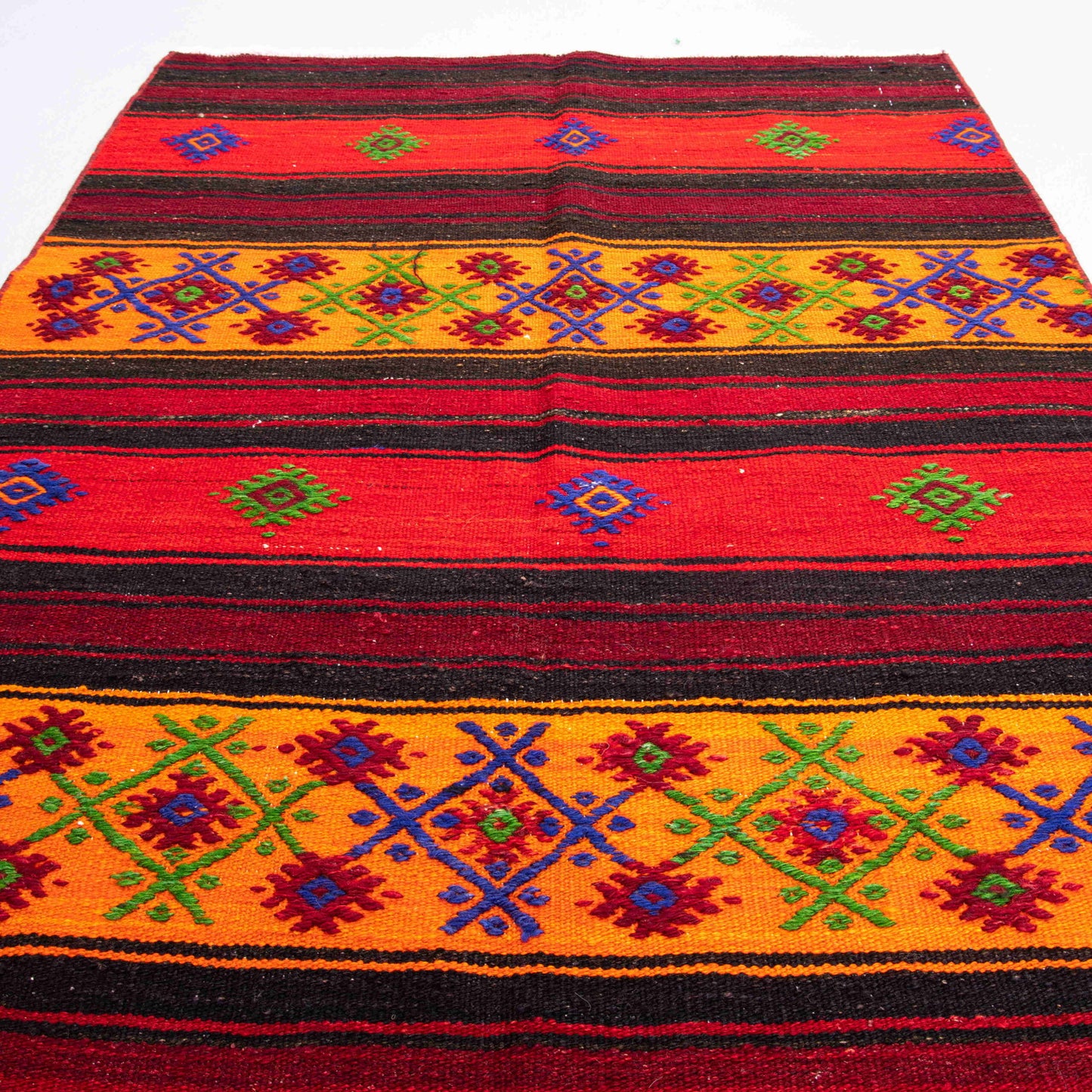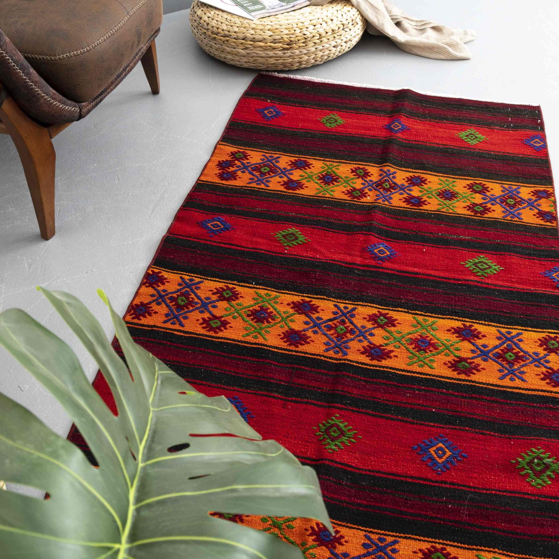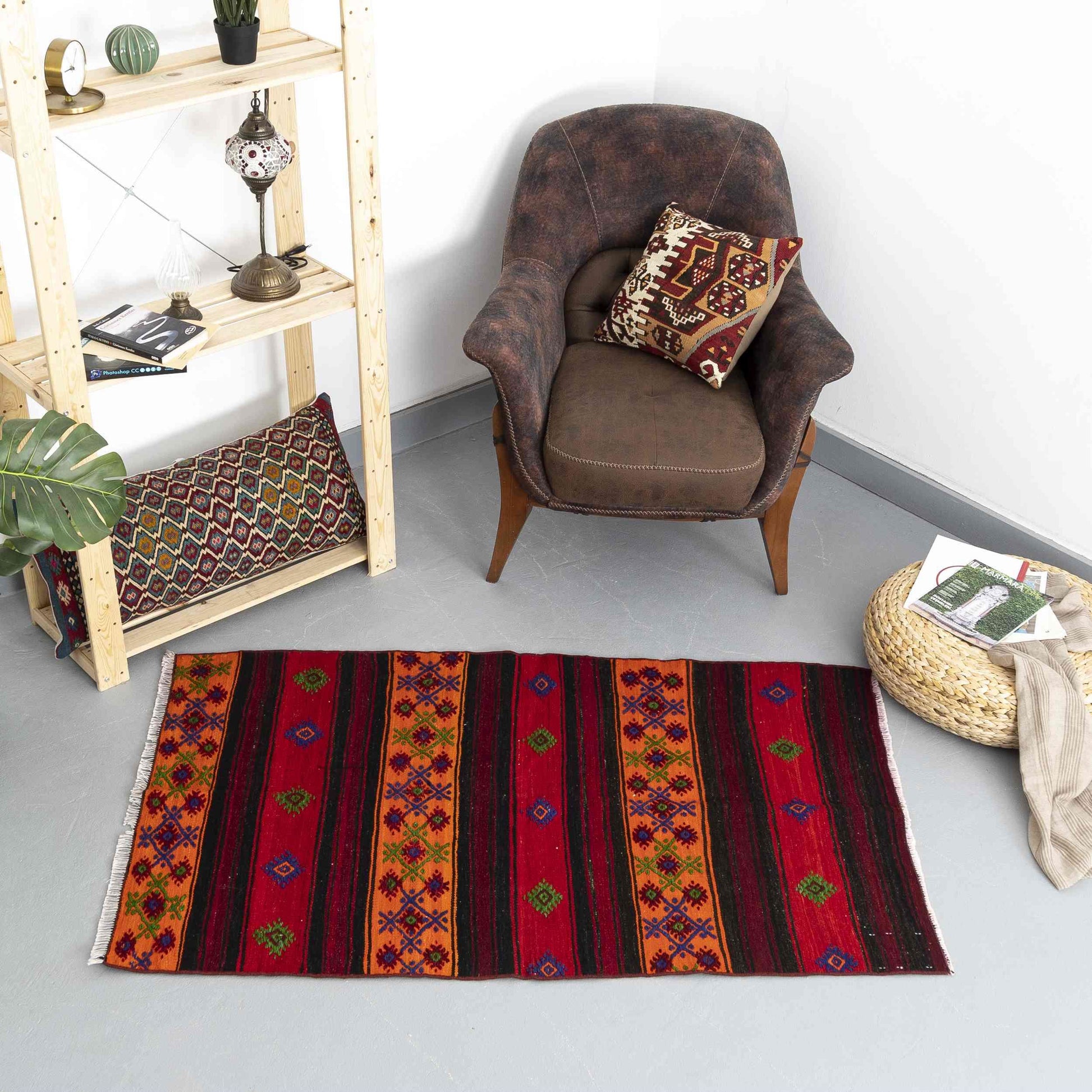 Kilim oriental: tejido de lana sobre lana hecho a mano de Anatolia (90 x 147 cm) en burdeos y multicolor