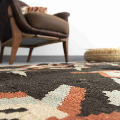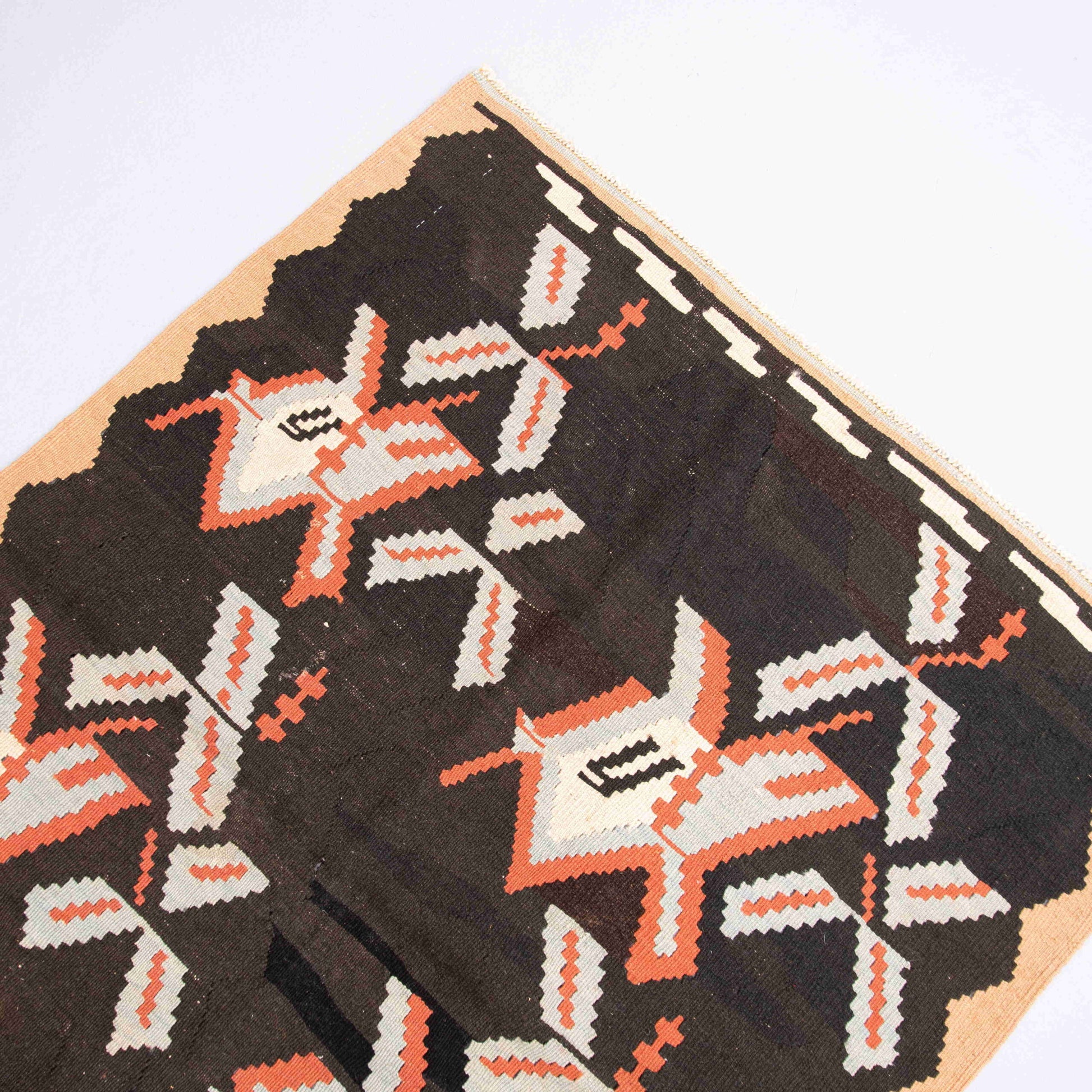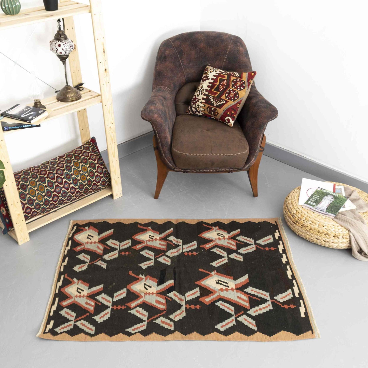 Kilim oriental: lana sobre lana hecha a mano de Anatolia - 95 x 131 cm (3' 2" x 4' 4") - Negro y multicolor