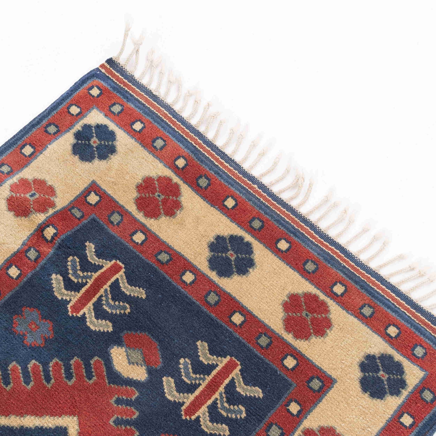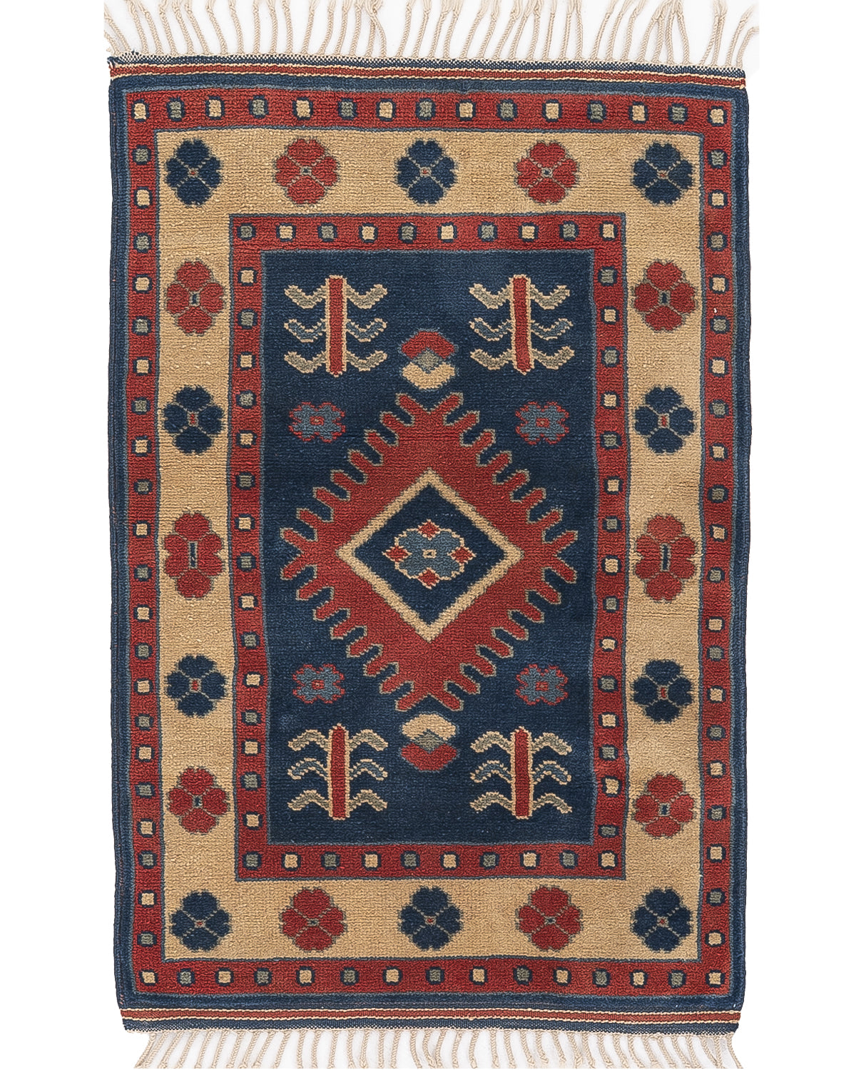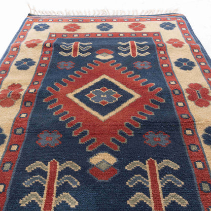 Alfombra oriental de Anatolia hecha a mano de lana sobre lana 86 X 132 cm - 2' 10'' X 4' 4'' Azul marino C012 ER01