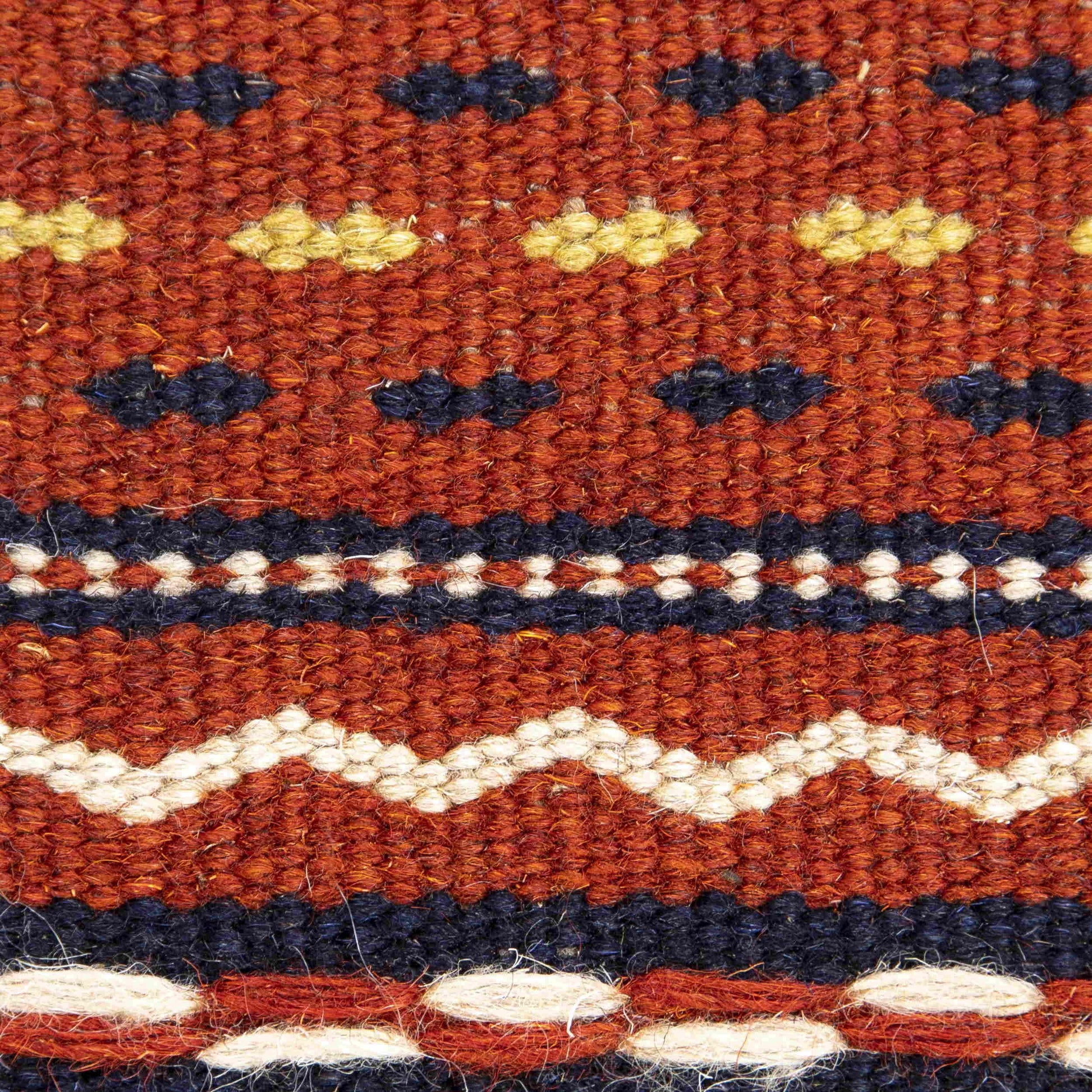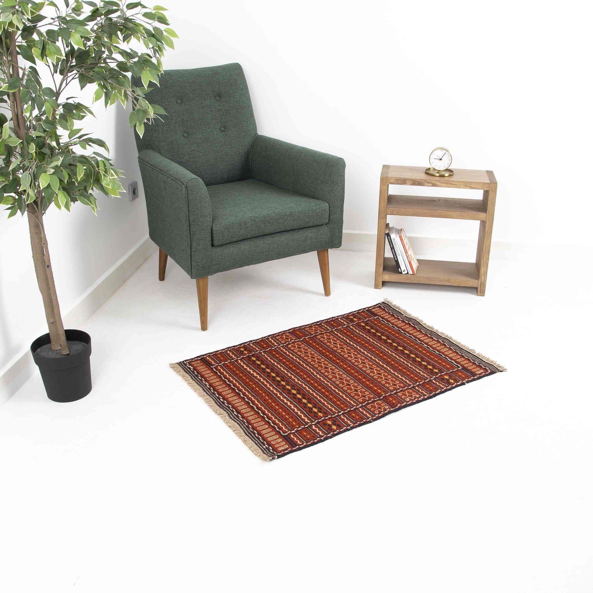 Presentamos nuestro kilim anatoliano hecho a mano , de 70 x 100 cm (2' 4" x 3' 4") , con patrones geométricos étnicos en impresionantes tonos naranja y multicolor . Elaborada con lana sobre lana , esta pieza única es una combinación perfecta de tradición y modernidad.