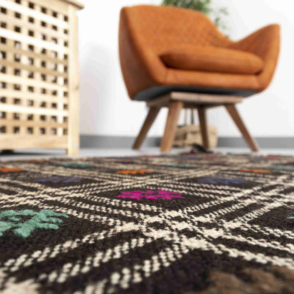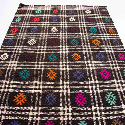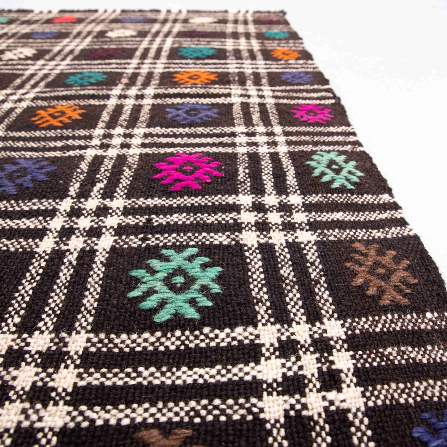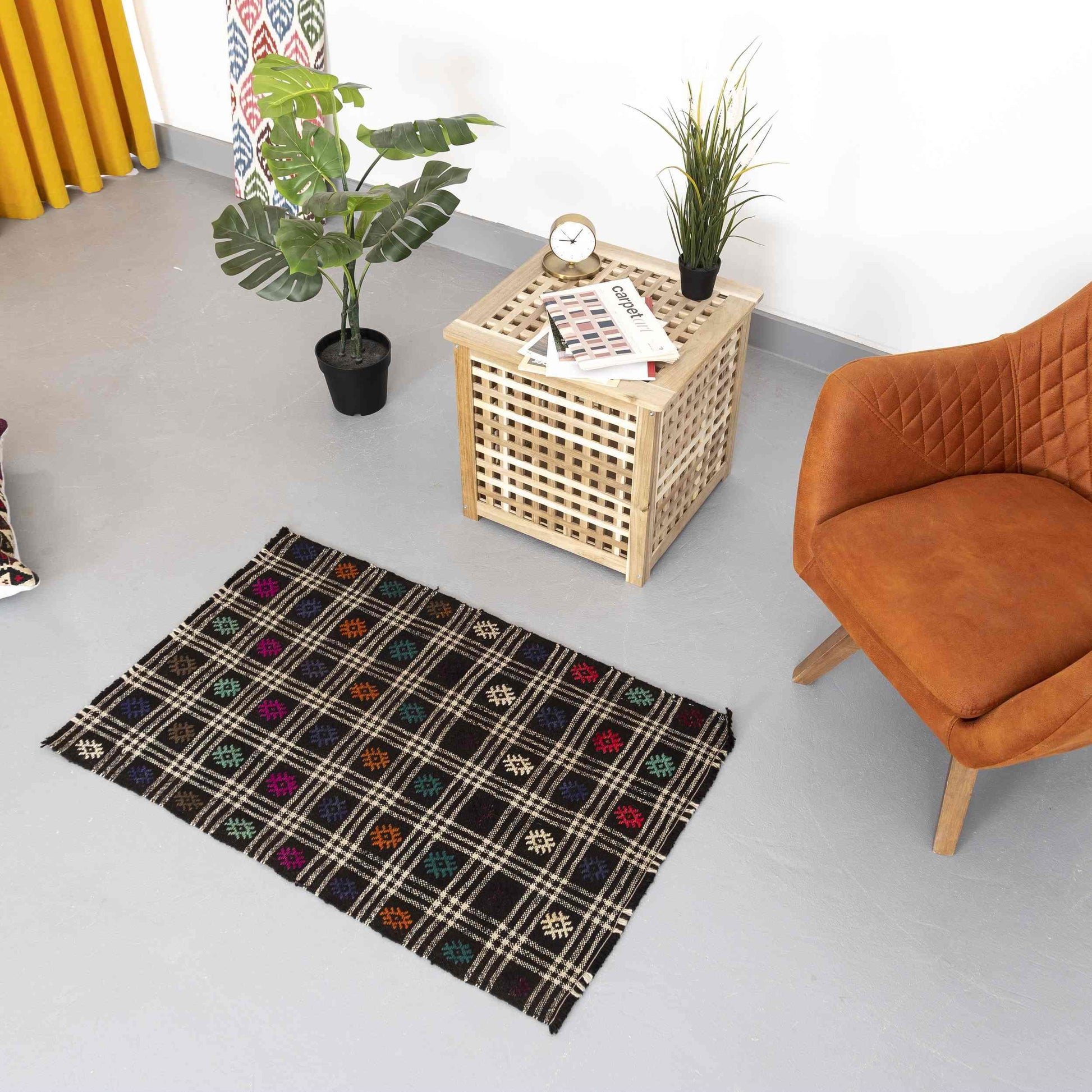 Kilim oriental cicim hecho a mano de lana sobre lana 74 x 109 cm - 2' 6'' X 3' 7'' Negro C002 ER01