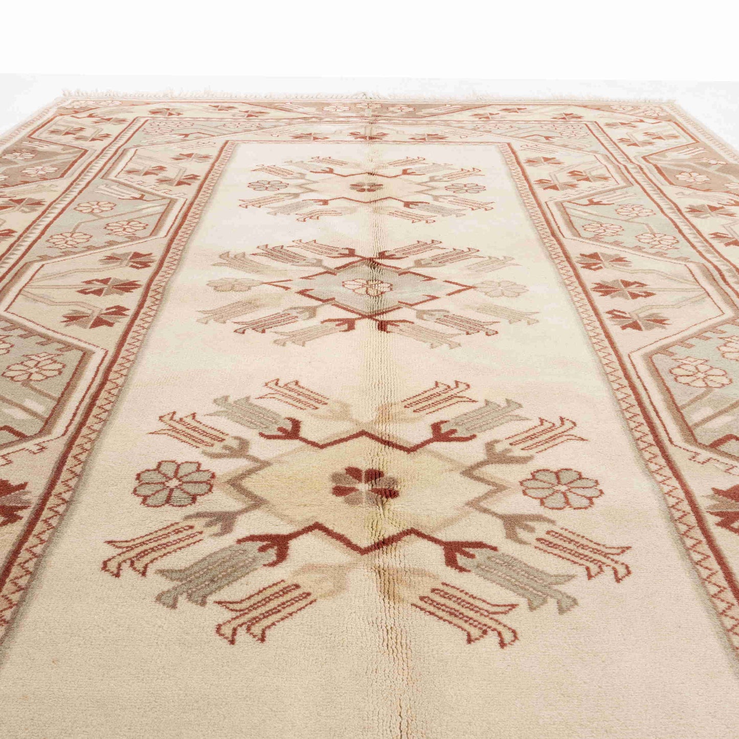 Sumérjase en el encanto mediterráneo con esta alfombra Milas , una obra maestra de lana tejida a mano . Conocidas por su rica historia y sus colores vibrantes , las alfombras Milas han viajado desde el corazón de Asia Central para adornar hogares de toda Anatolia .