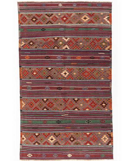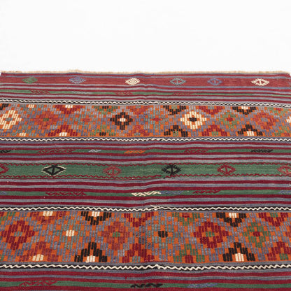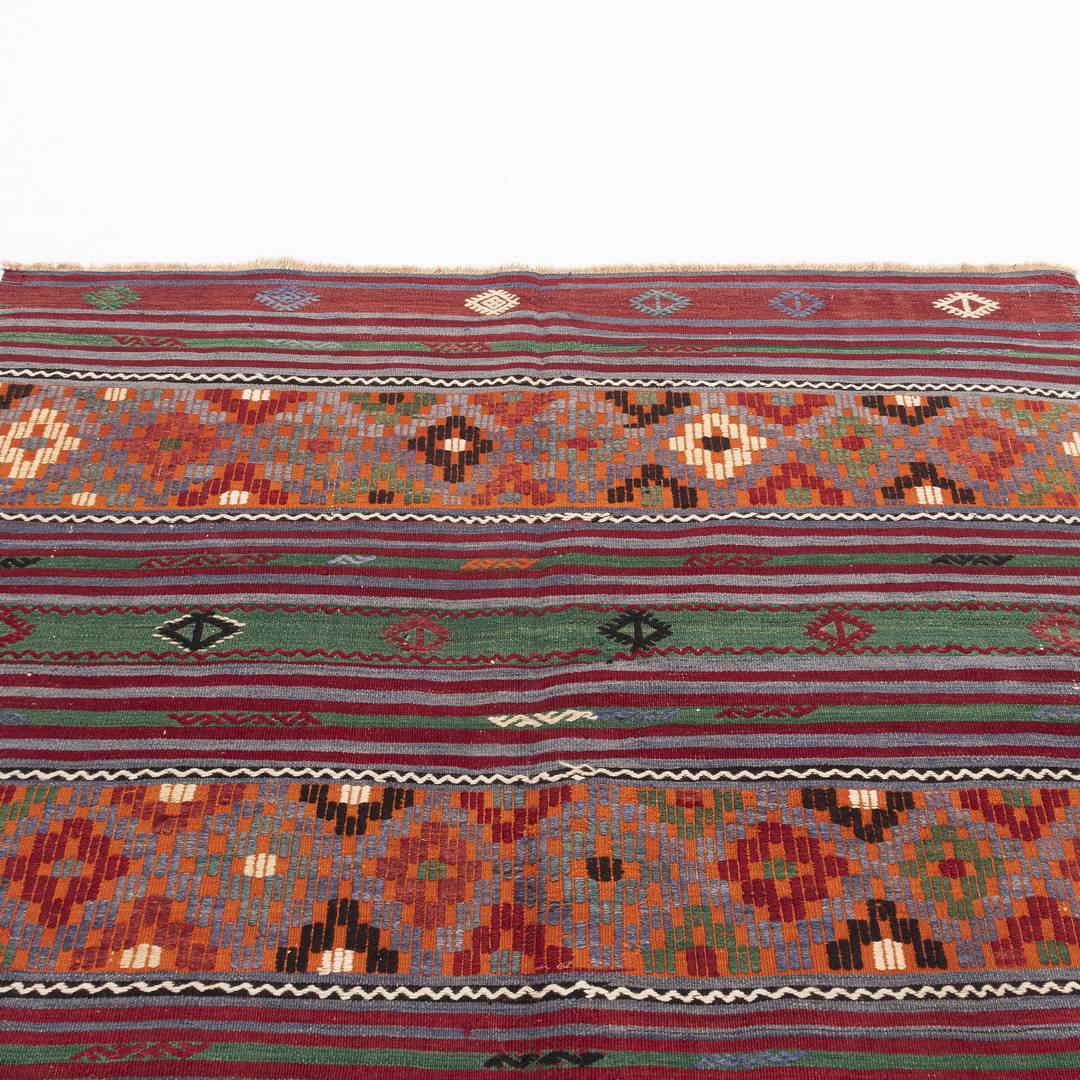 This stunning 170 X 248 cm (5' 7'' X 8' 2'') multicolor kilim, crafted from wool on wool, brings the rich history of Anatolia right into your home. With intricate patterns and vibrant colors, this handmade piece is more than a rug—it's a timeless statement that connects you to a 3,500-year-old tradition.