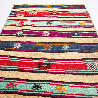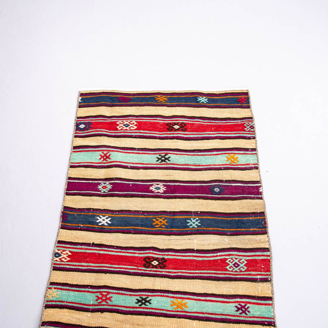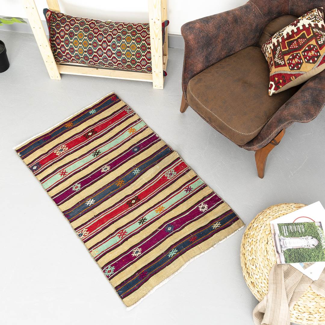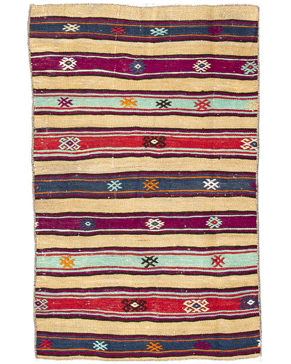 Oriental Kilim: Anatolian Handmade Wool on Wool (72 x 116 cm - 2' 5" x 3' 10") in Sand and Multicolor
