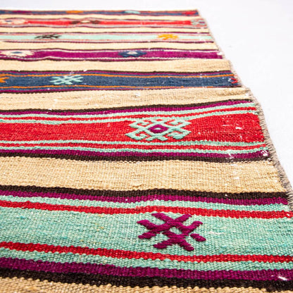 By selecting this Anatolian kilim, you’re choosing a piece that not only enriches your decor but also carries the weight of history and tradition.