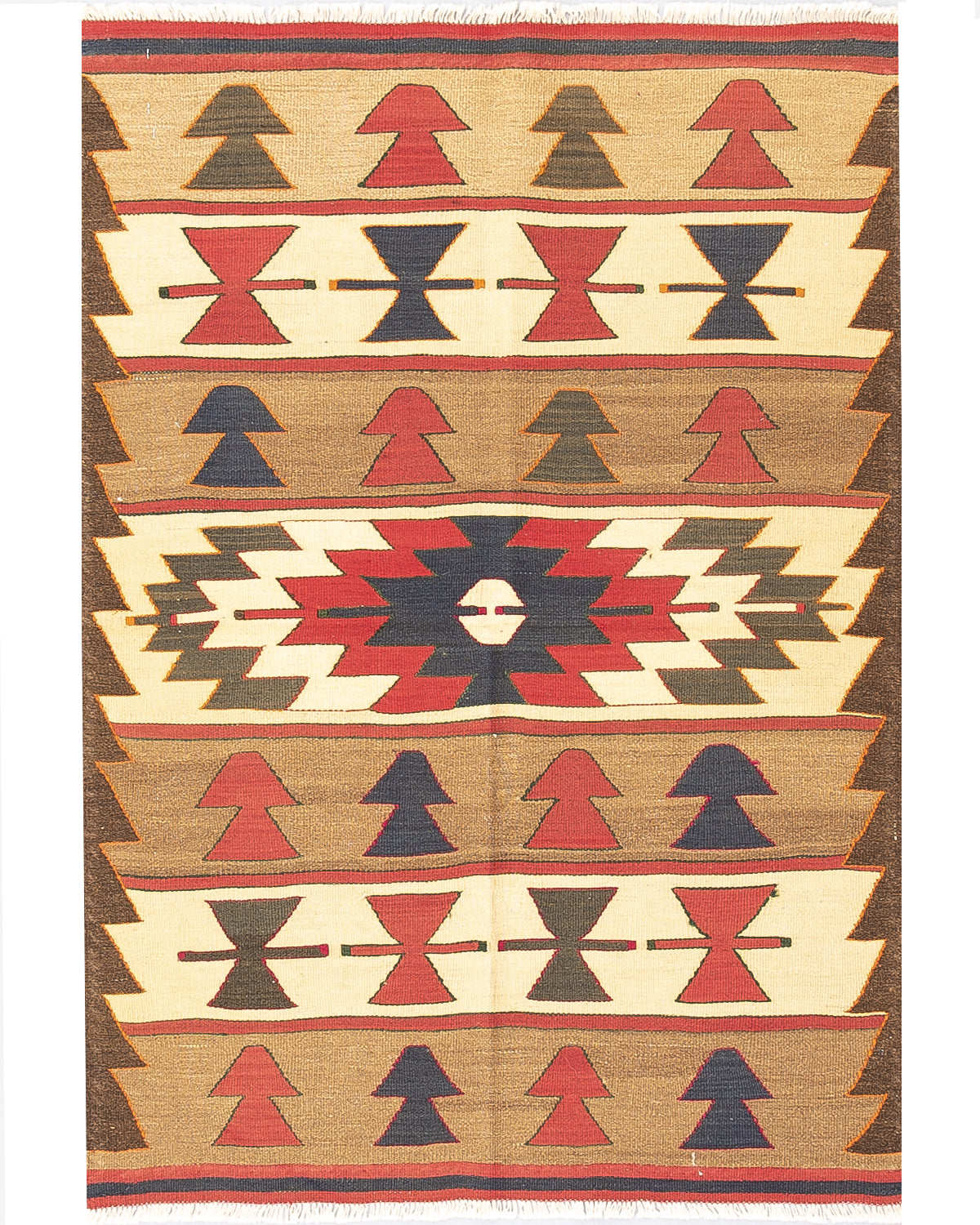 Oriental Kilim | Anatolian Handmade Wool | Size: 94 x 136 cm (3' 2'' x 4' 6'') | Colors: Stone and Multicolor